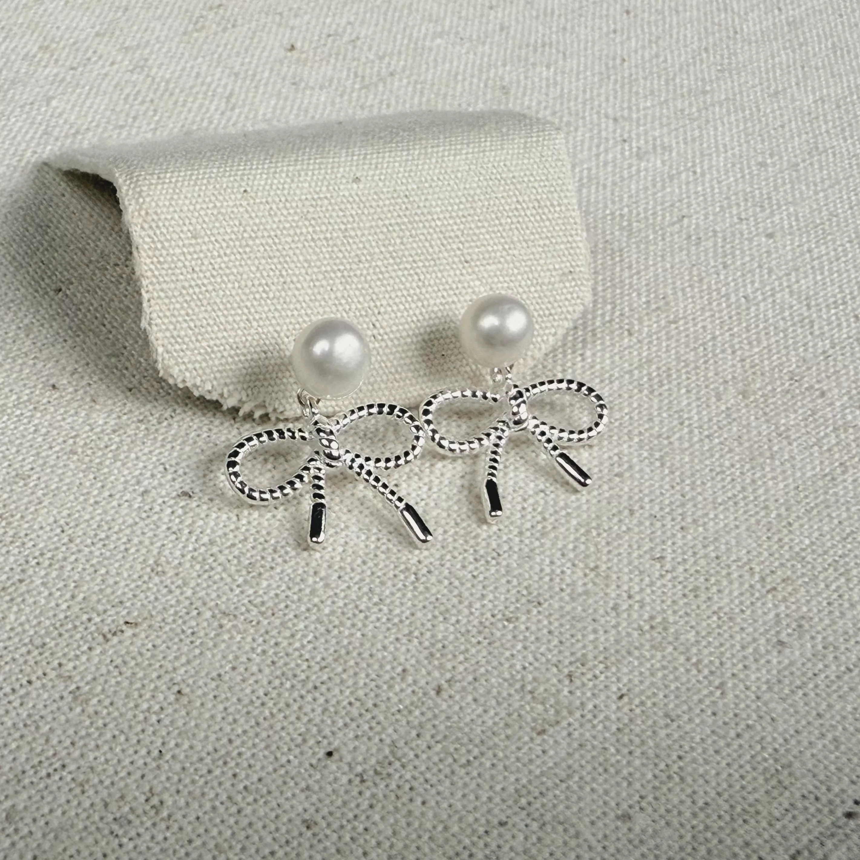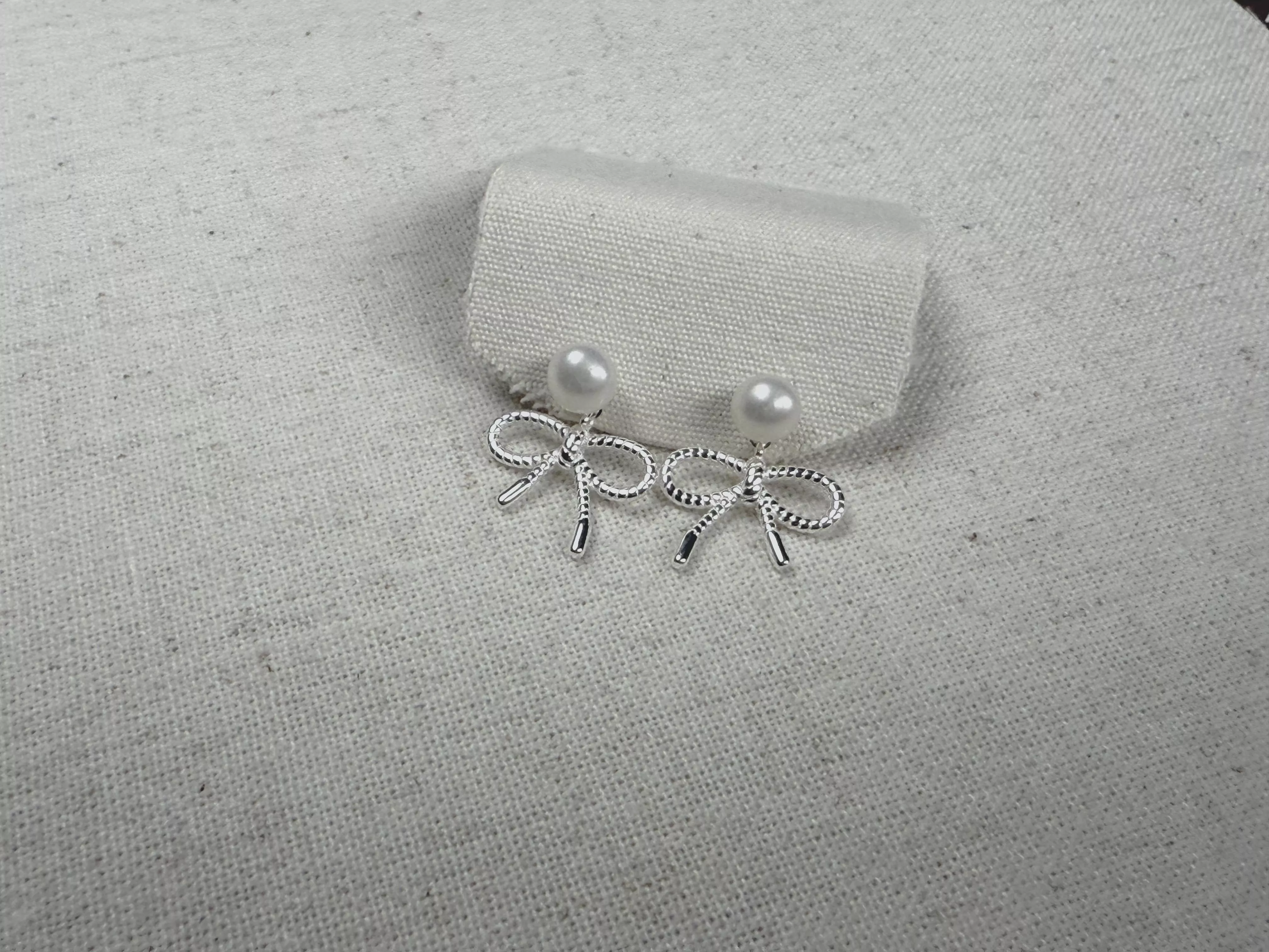 這款耳環以純銀描摹蝴蝶結輪廓