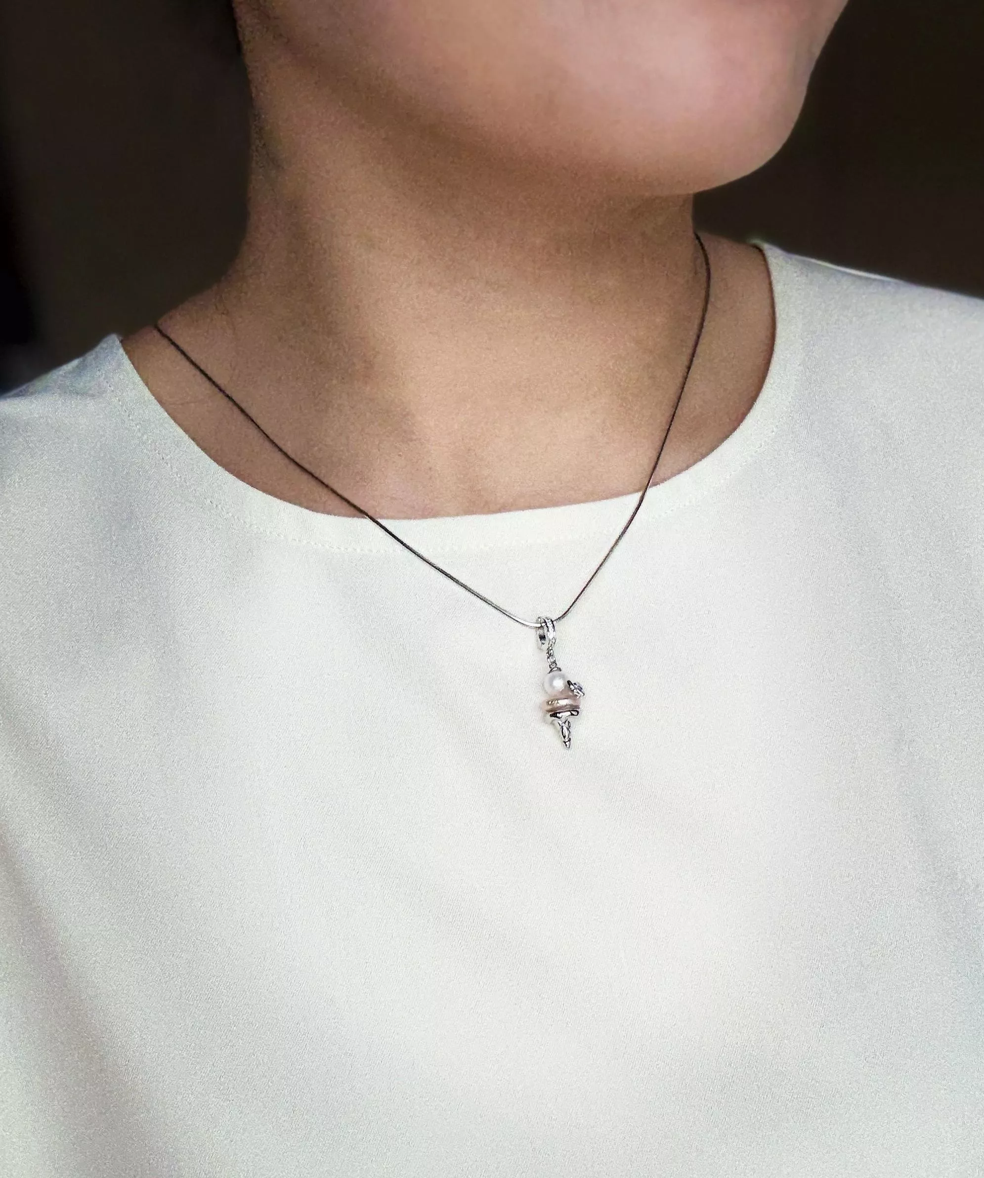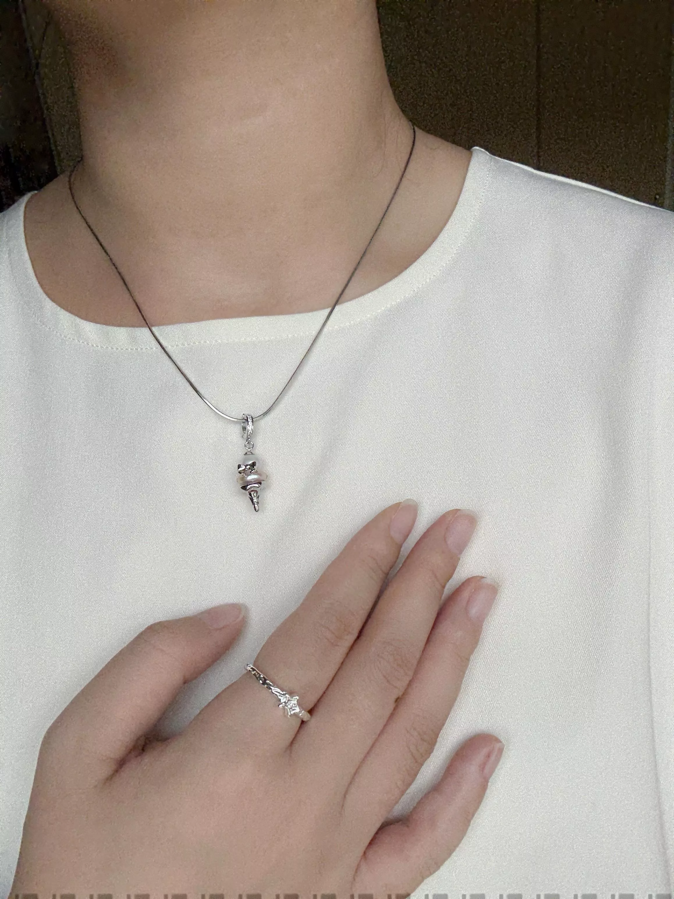 以淡水珍珠搭配純銀鍊條