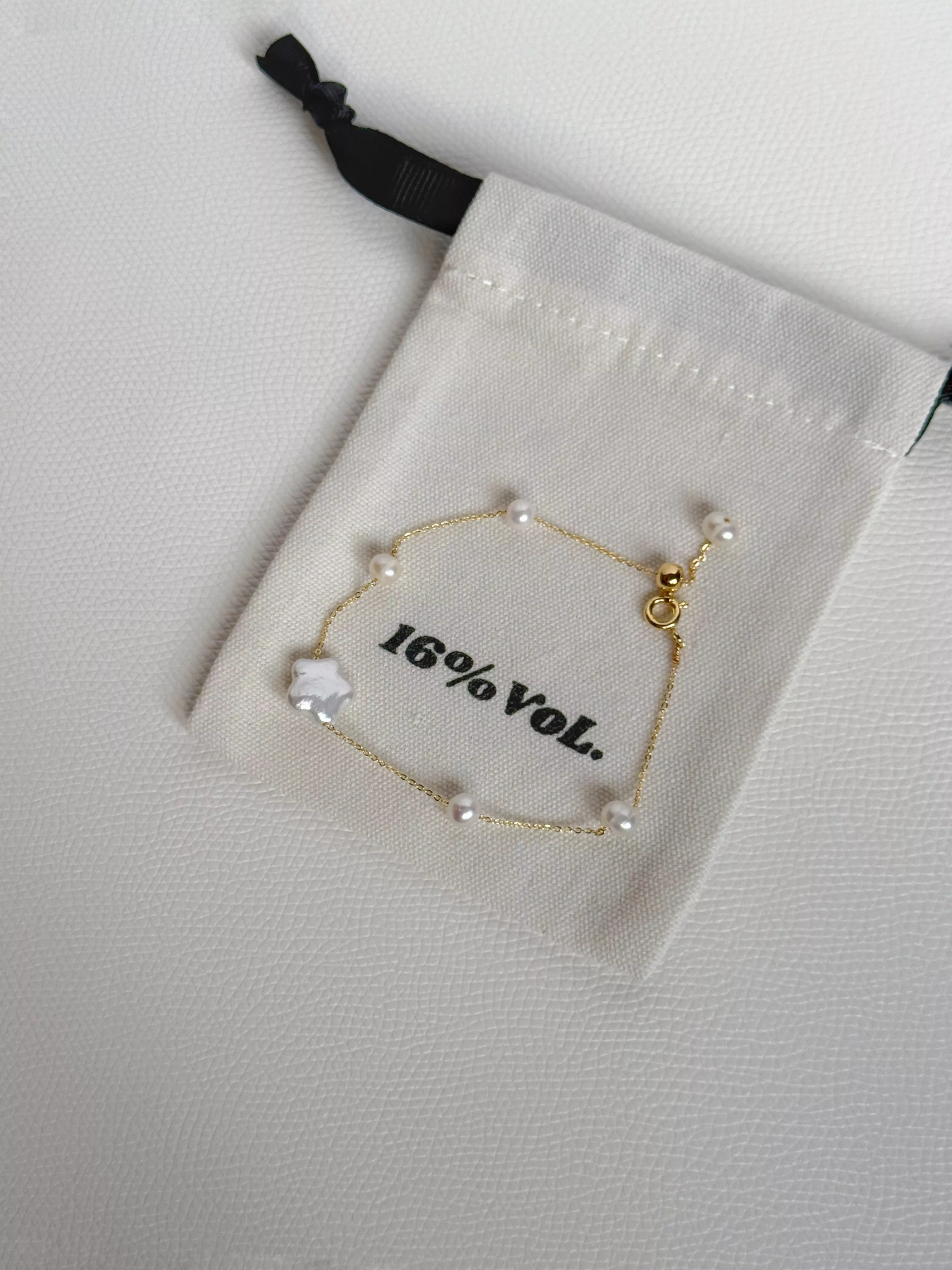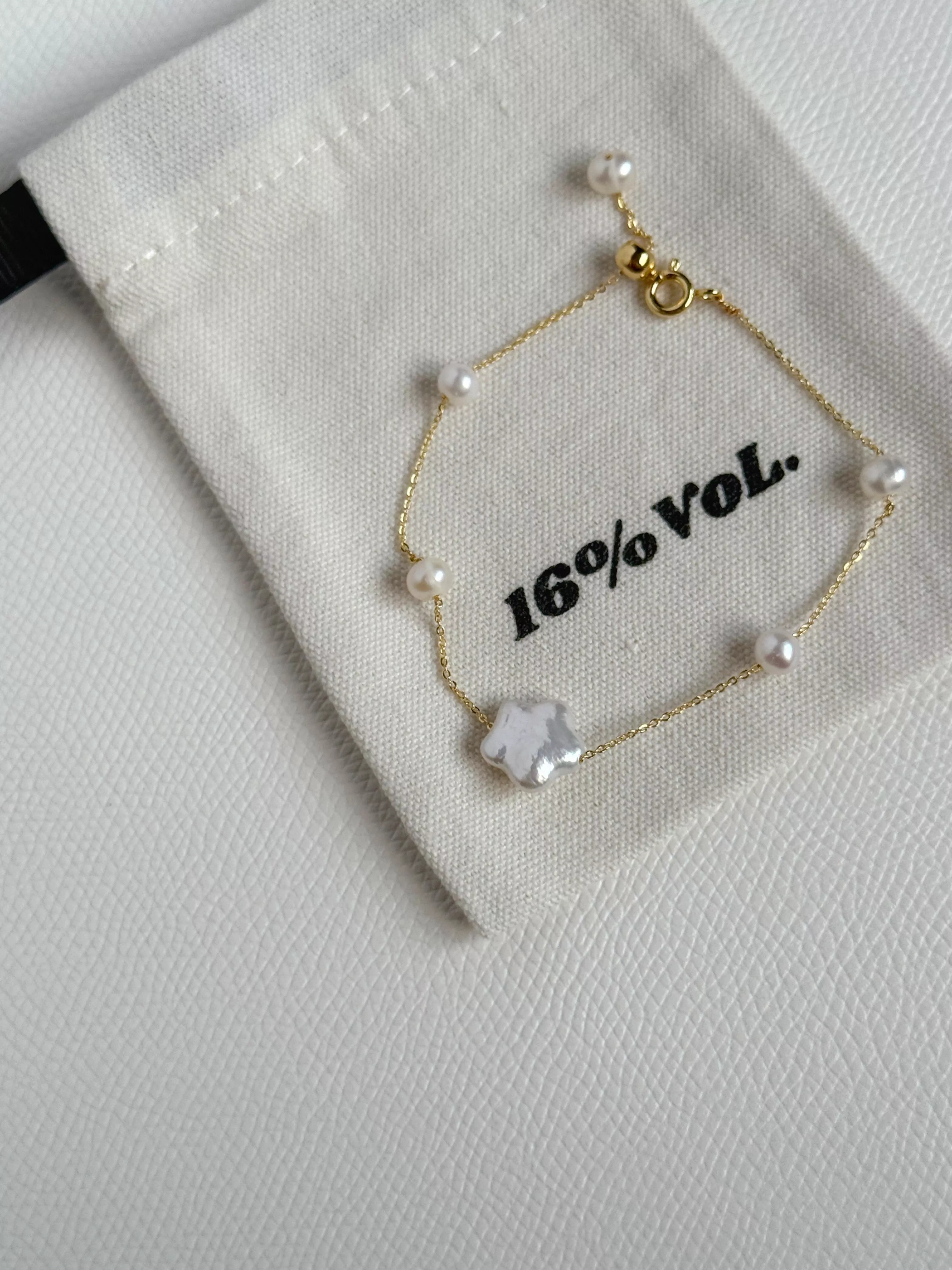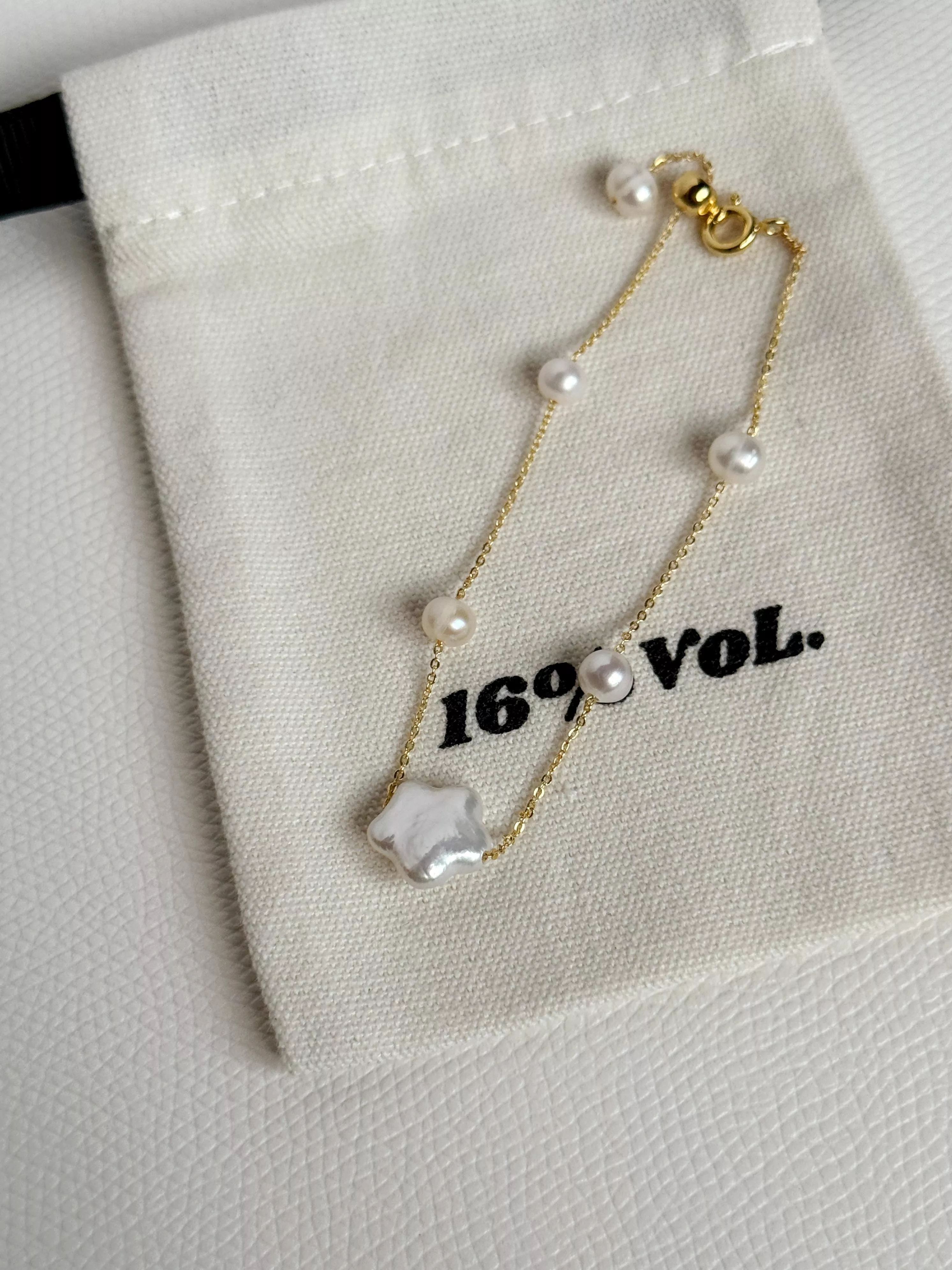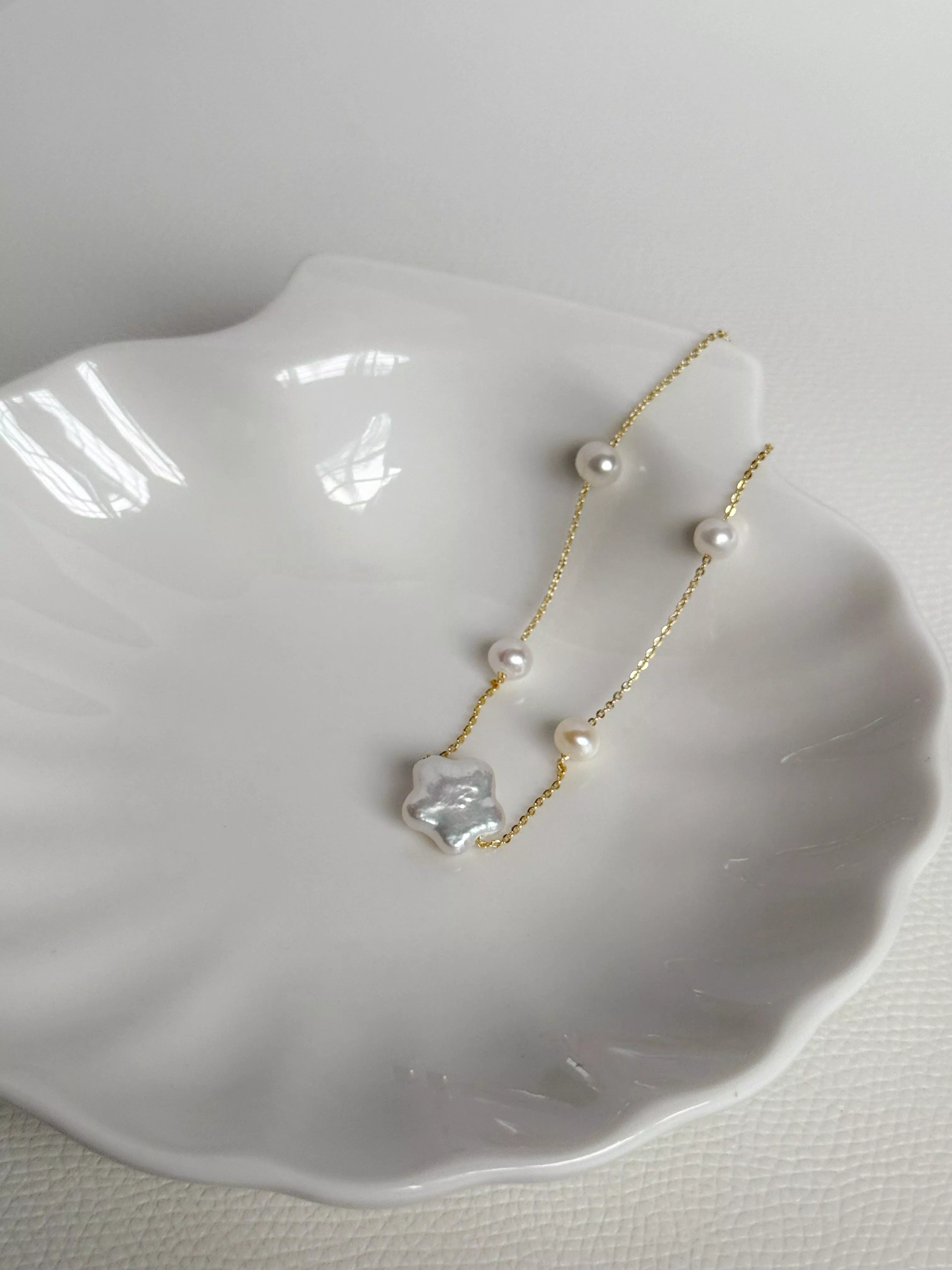 搭配細緻金色鏈條與小巧淡水珍珠點綴