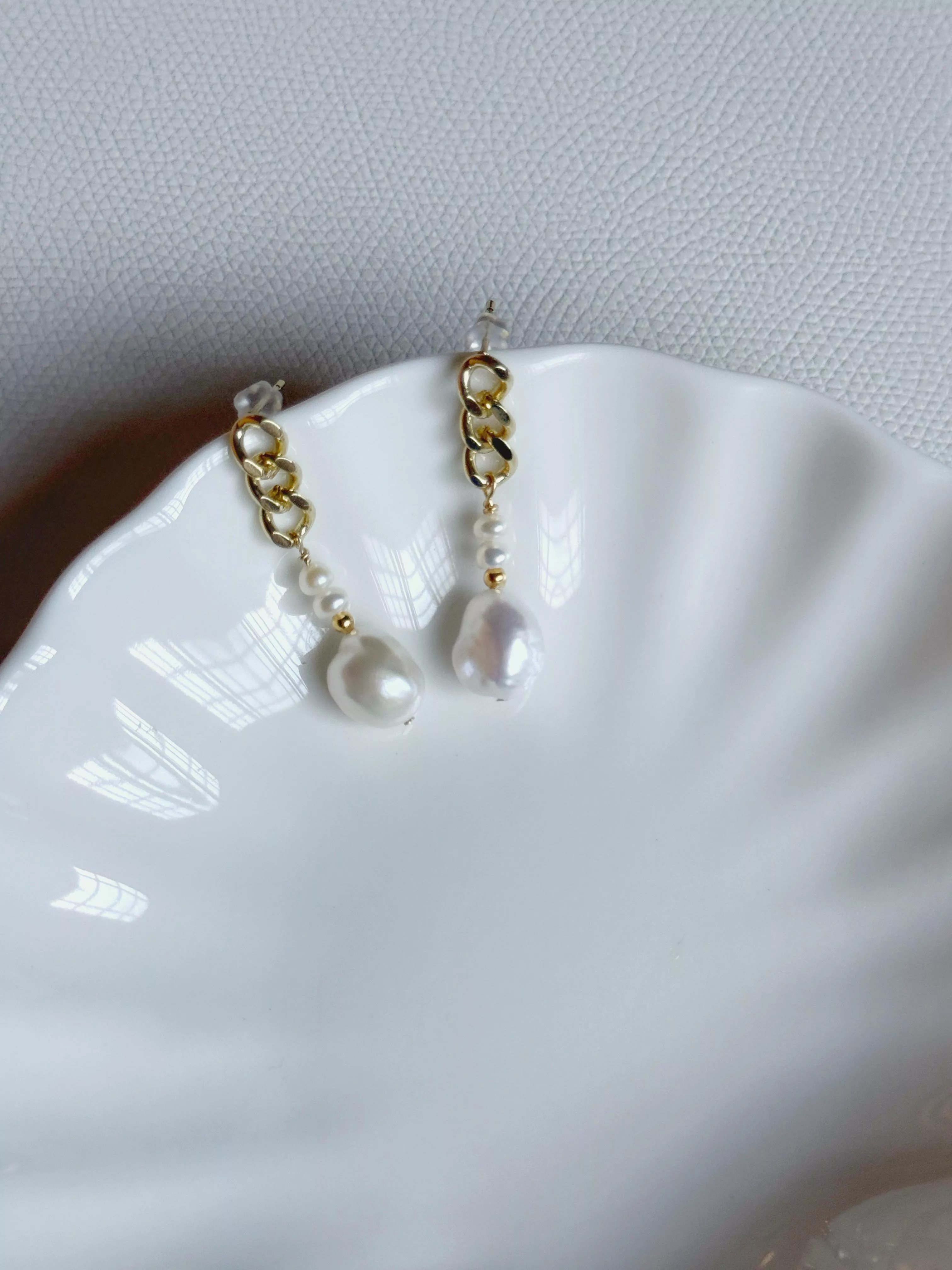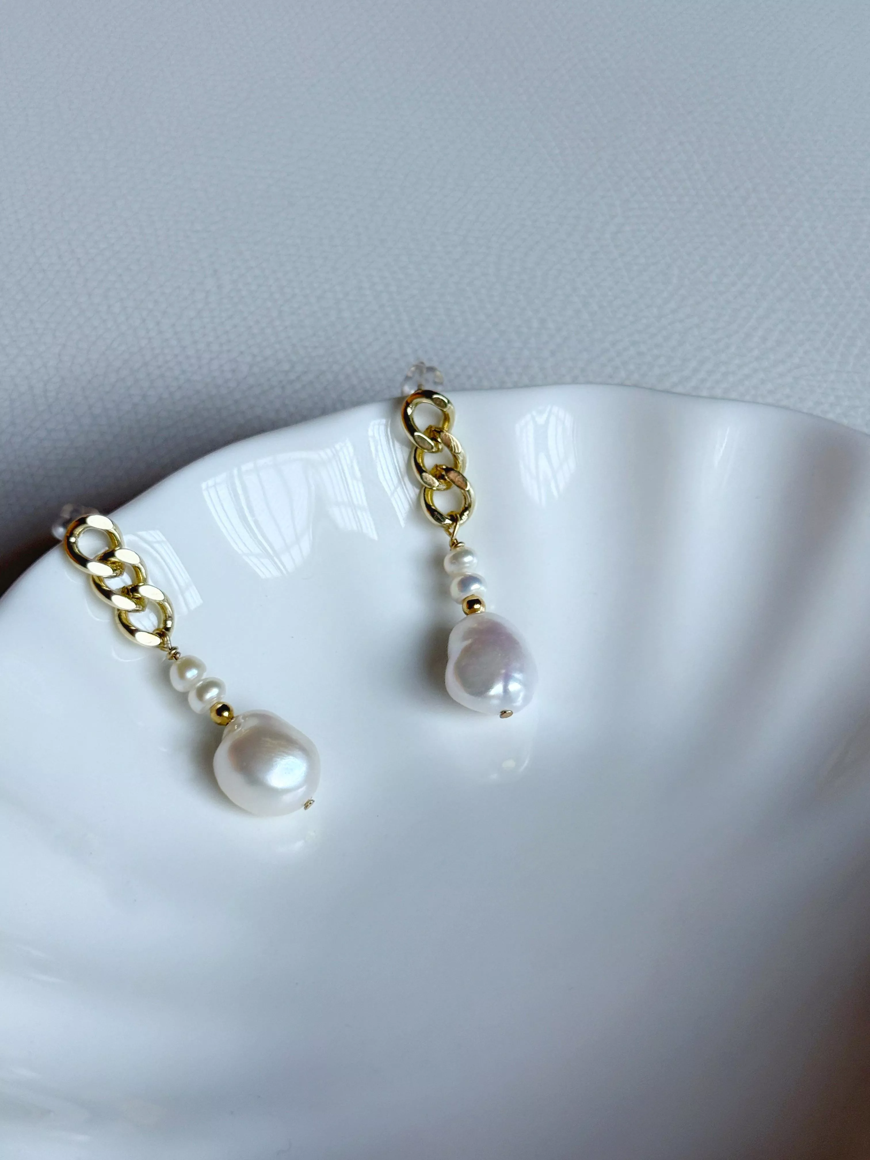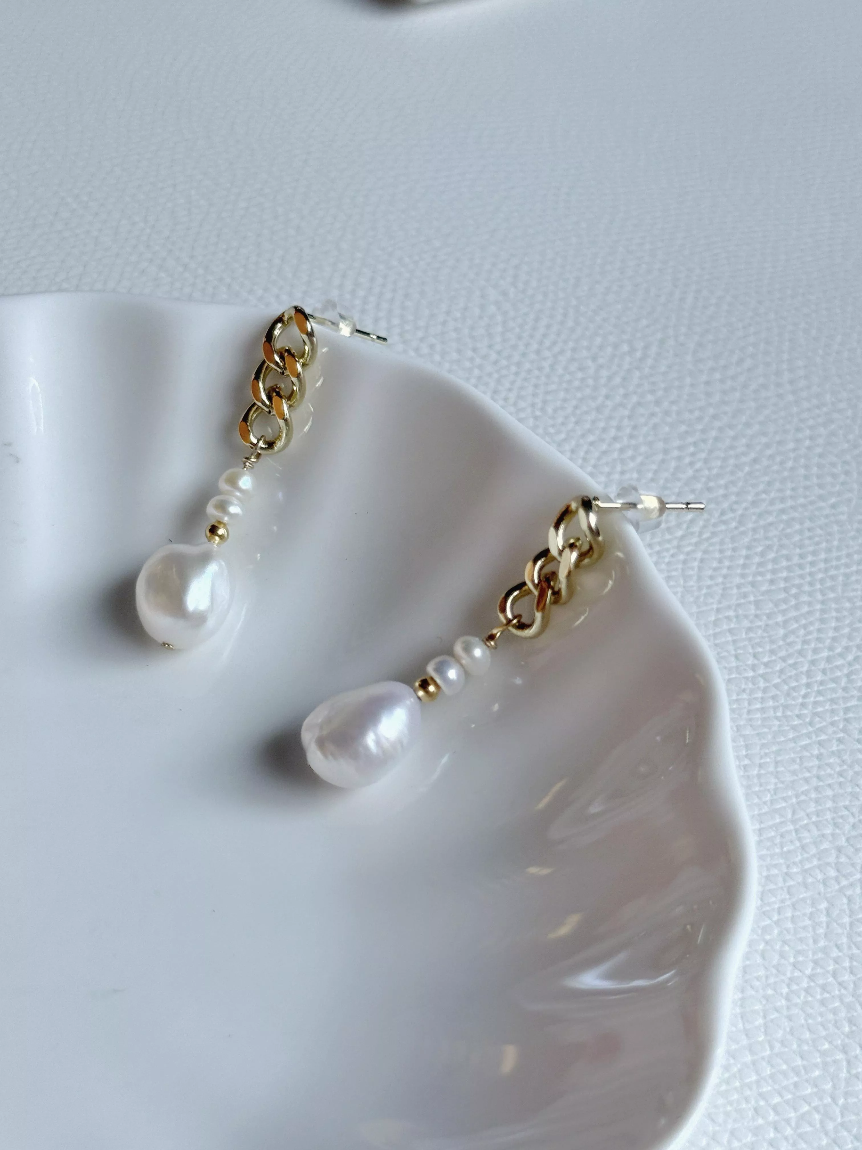 搭配質感金色鏈條與純銀耳針,低敏舒適