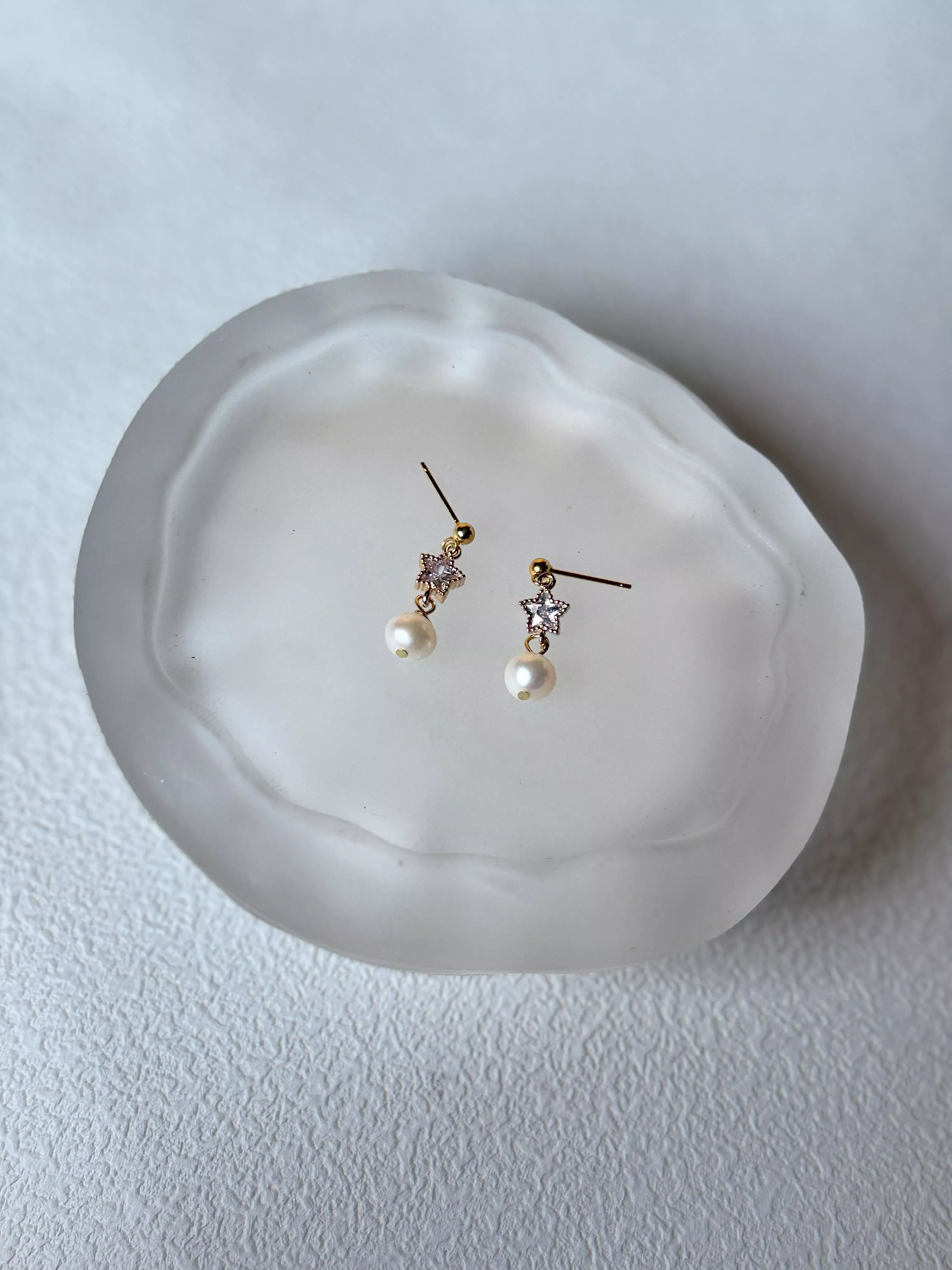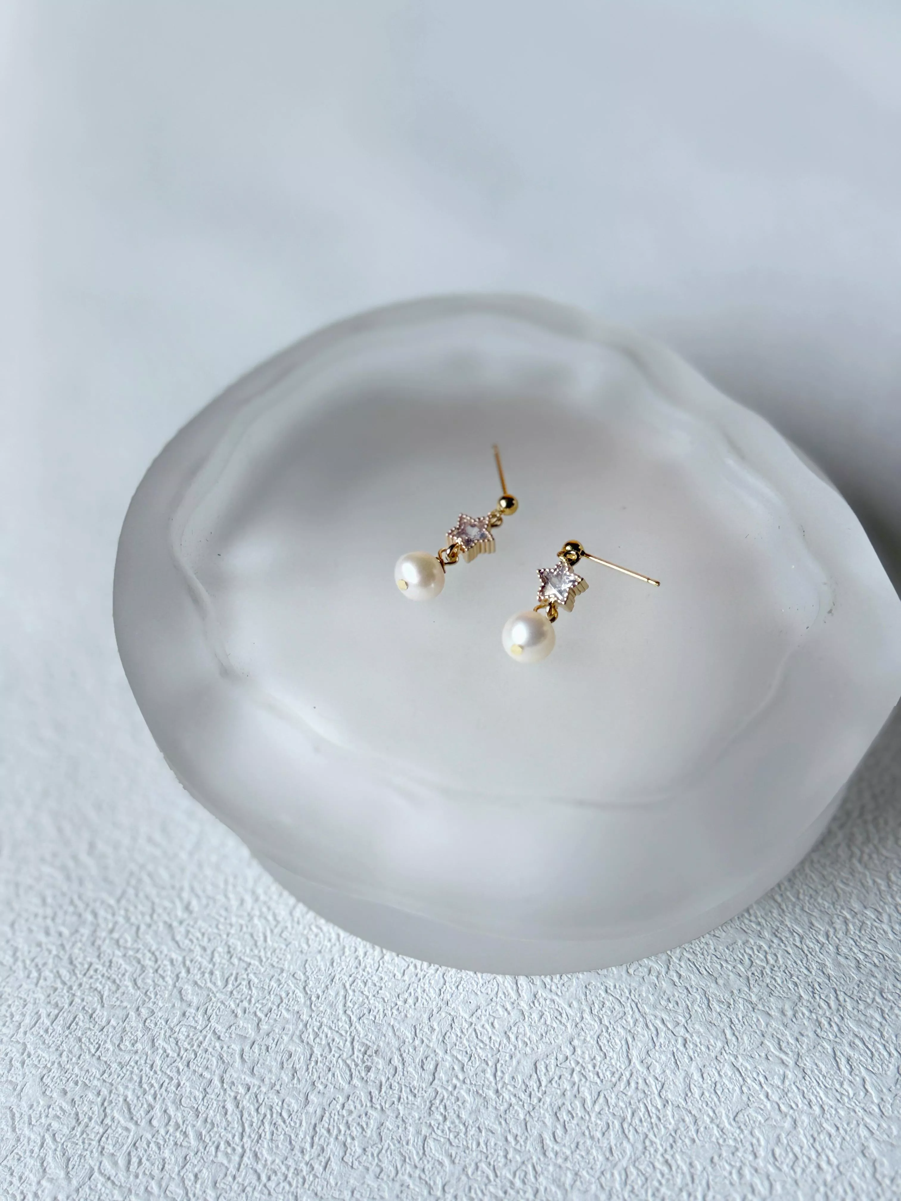 |微醺的光芒|鋯石星星珍珠耳環