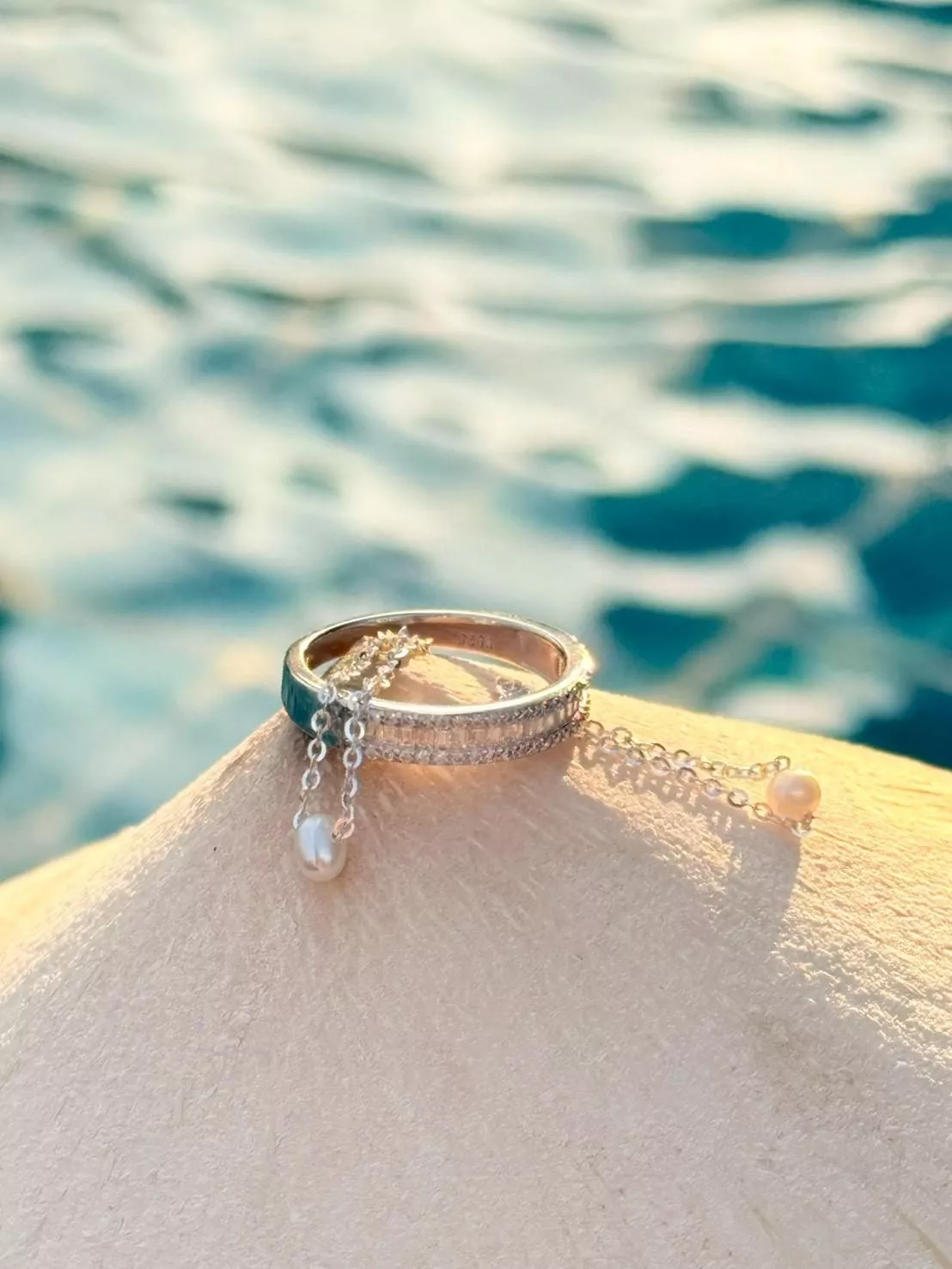 |時光裡的溫柔|淡水珍珠鏈條戒指