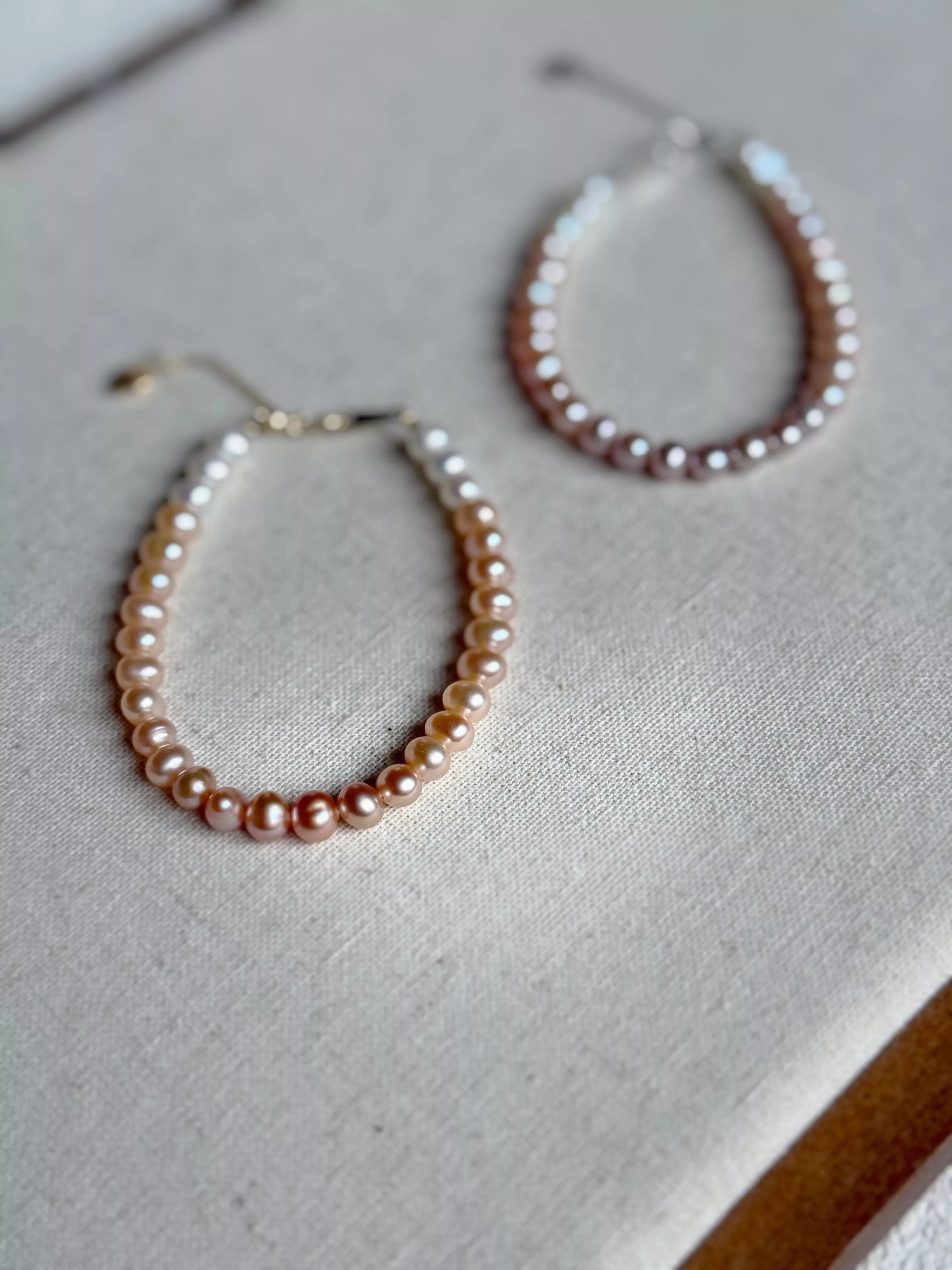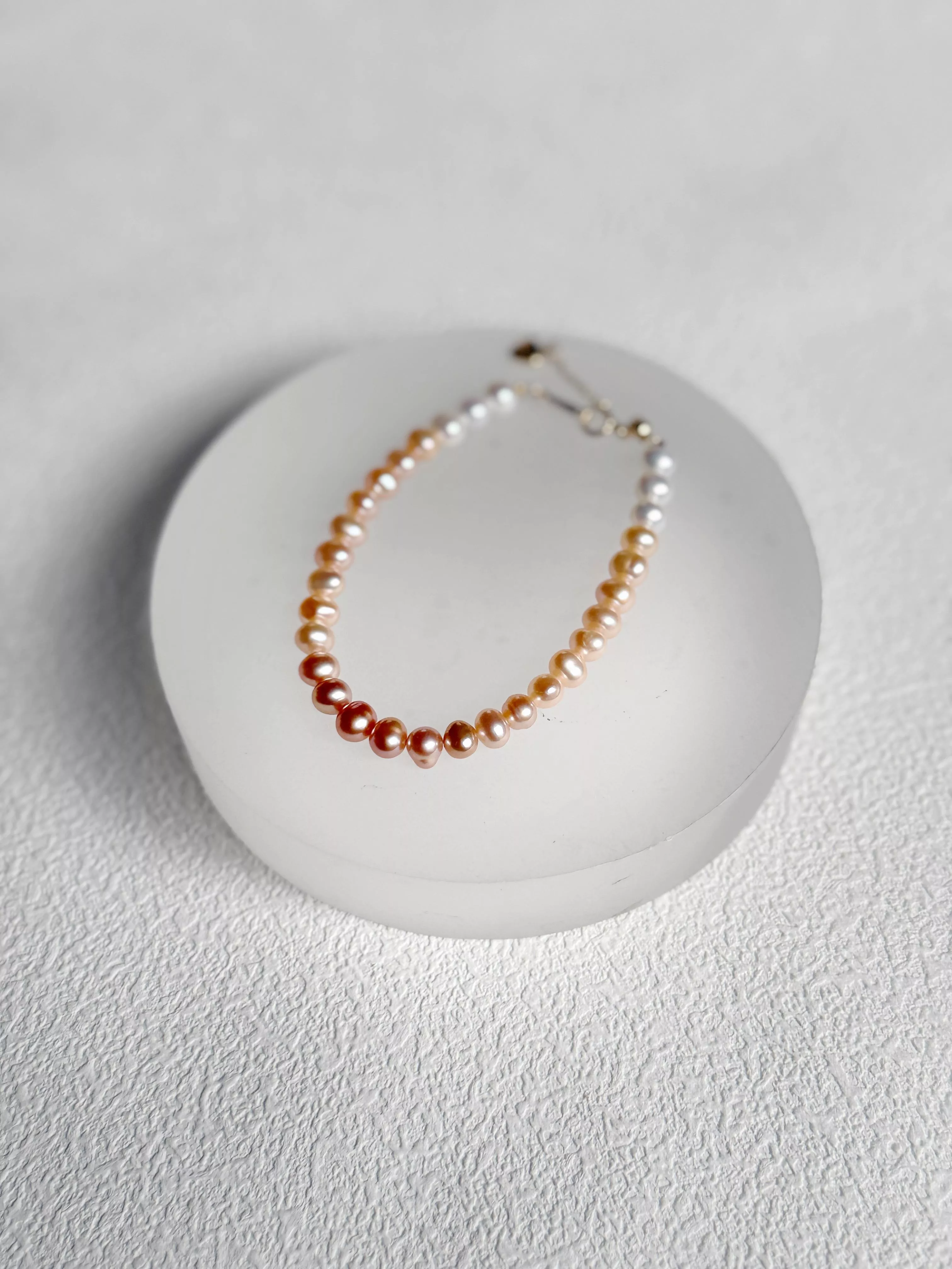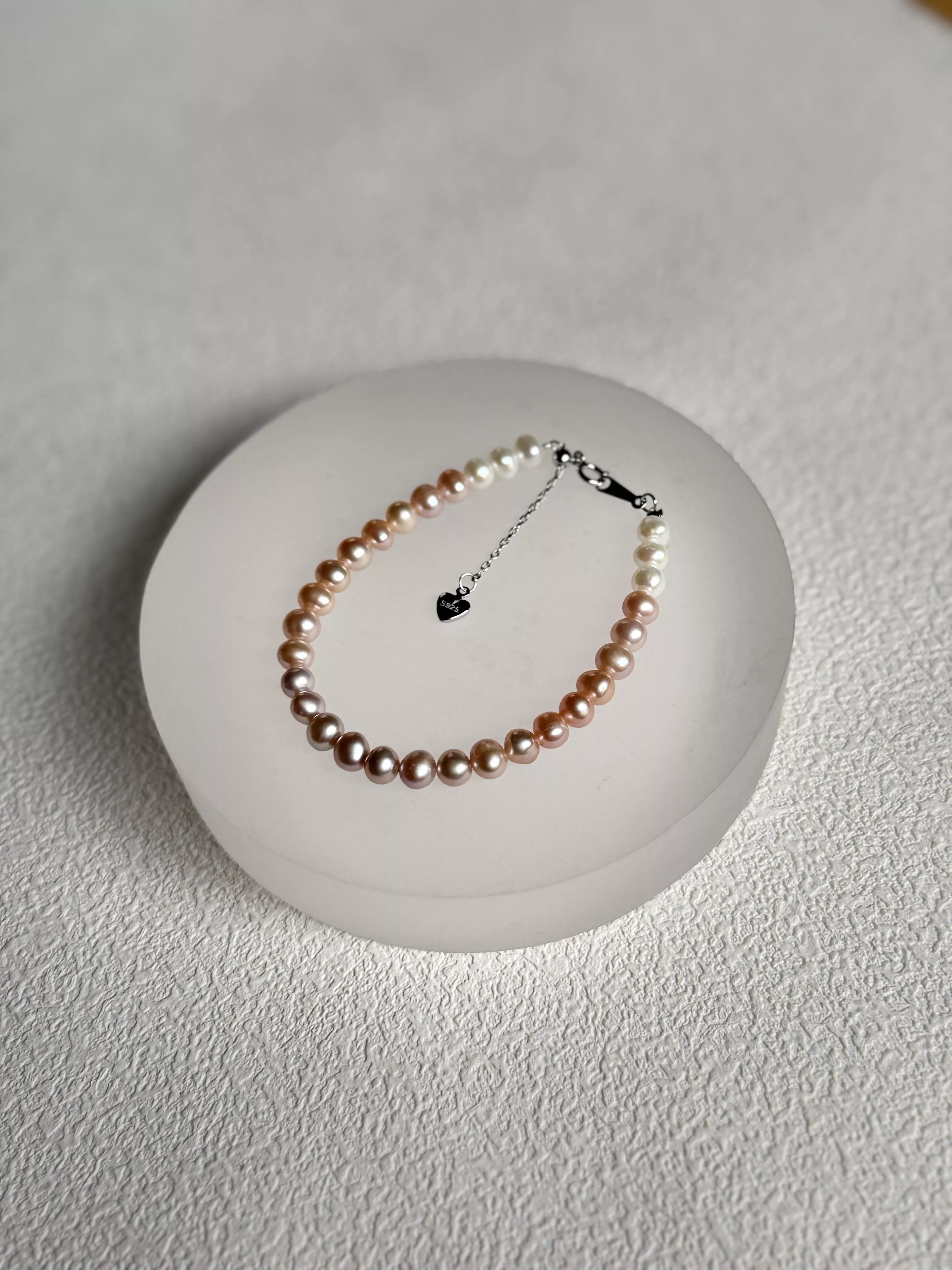 利用珍珠天生的皮色光澤,由淺至濃排列,