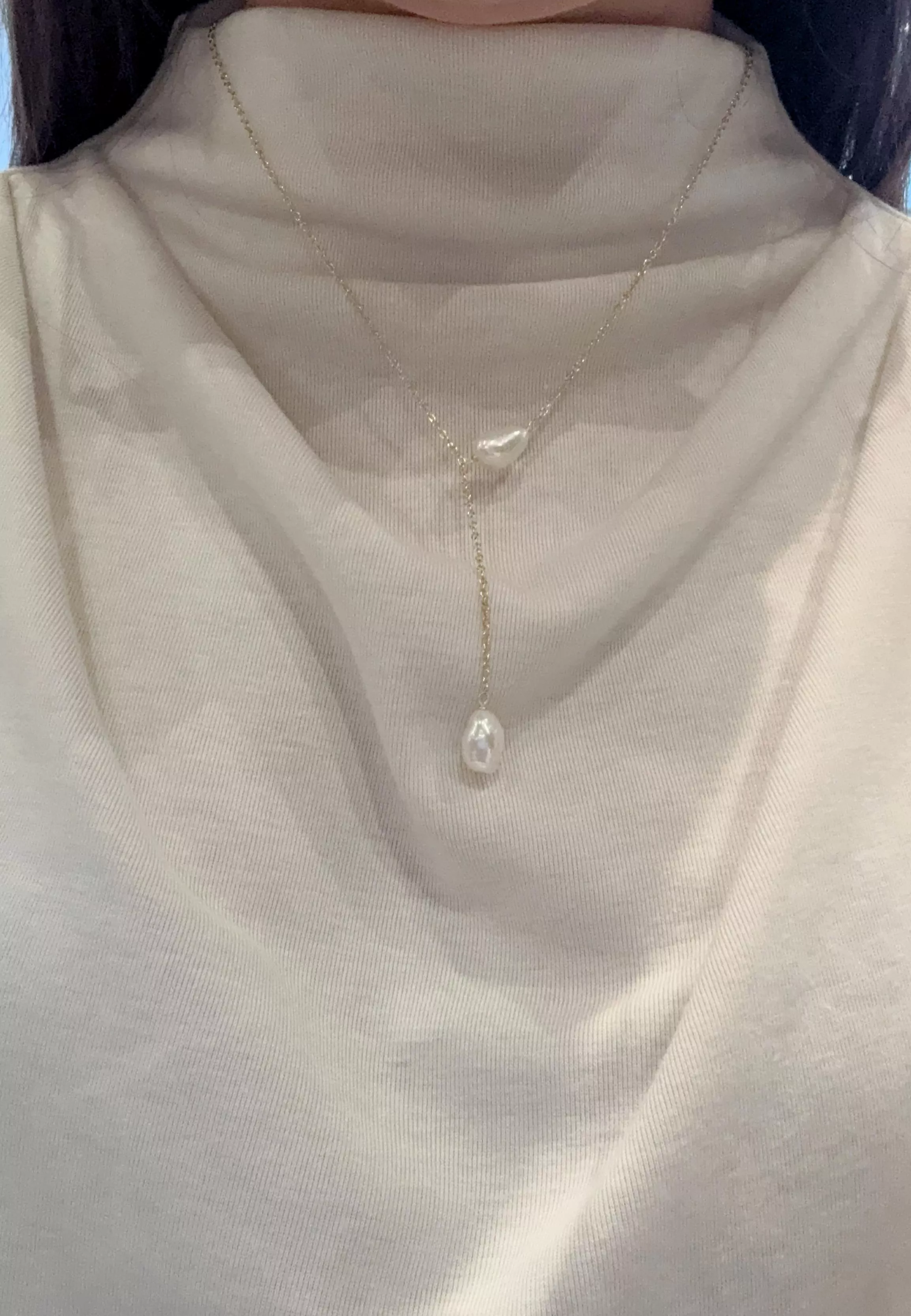 |微醺流淌|巴洛克珍珠 Y 字調節項鍊